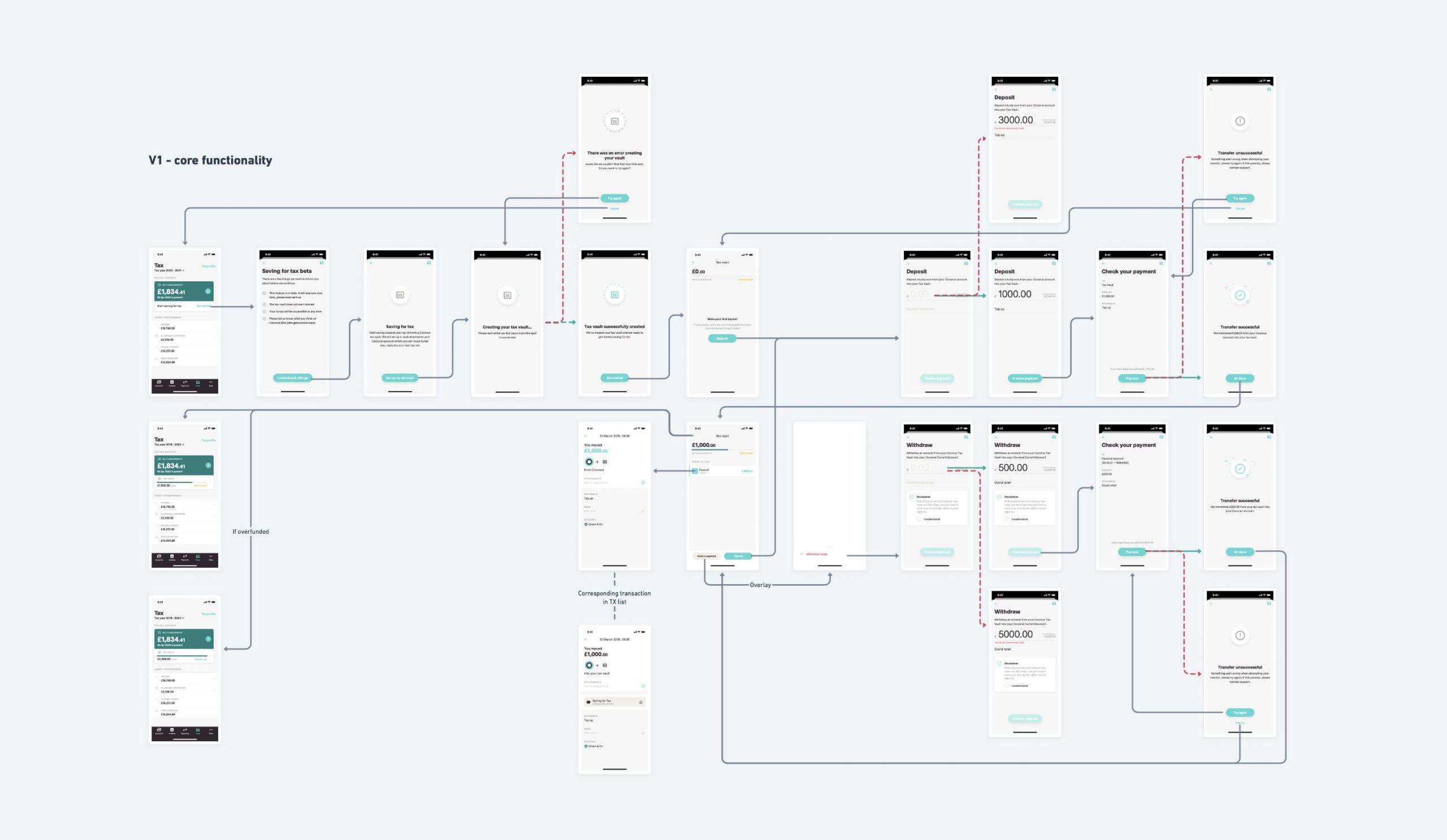 The UI was kept understated, with a simple progress bar when viewing savings in the context of the tax estimate. The feature had a subsequent screen for transaction activity and a few flows coming off that for deposits, withdrawals and settings for the automation side.